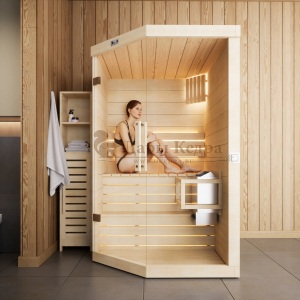 Двухместная угловая финская «Элит» сауна кабина из кедра и липы с электрокаменкой